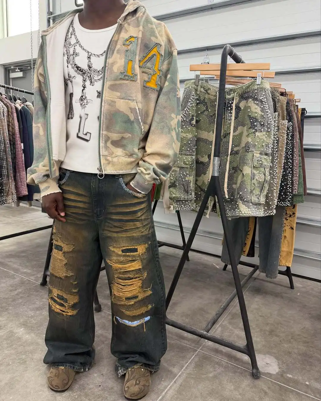Fashion hoodie sweatshirt printed casual hoodie jacket camouflage men's and women's cardigan patch fabric